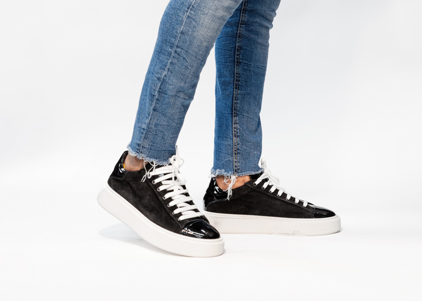 THIS SNEAKER IS MADE OF PATENT AND SUEDE LEATHER UPPER AND RUBBLE SOLE. HANDMADE IN ITALY |