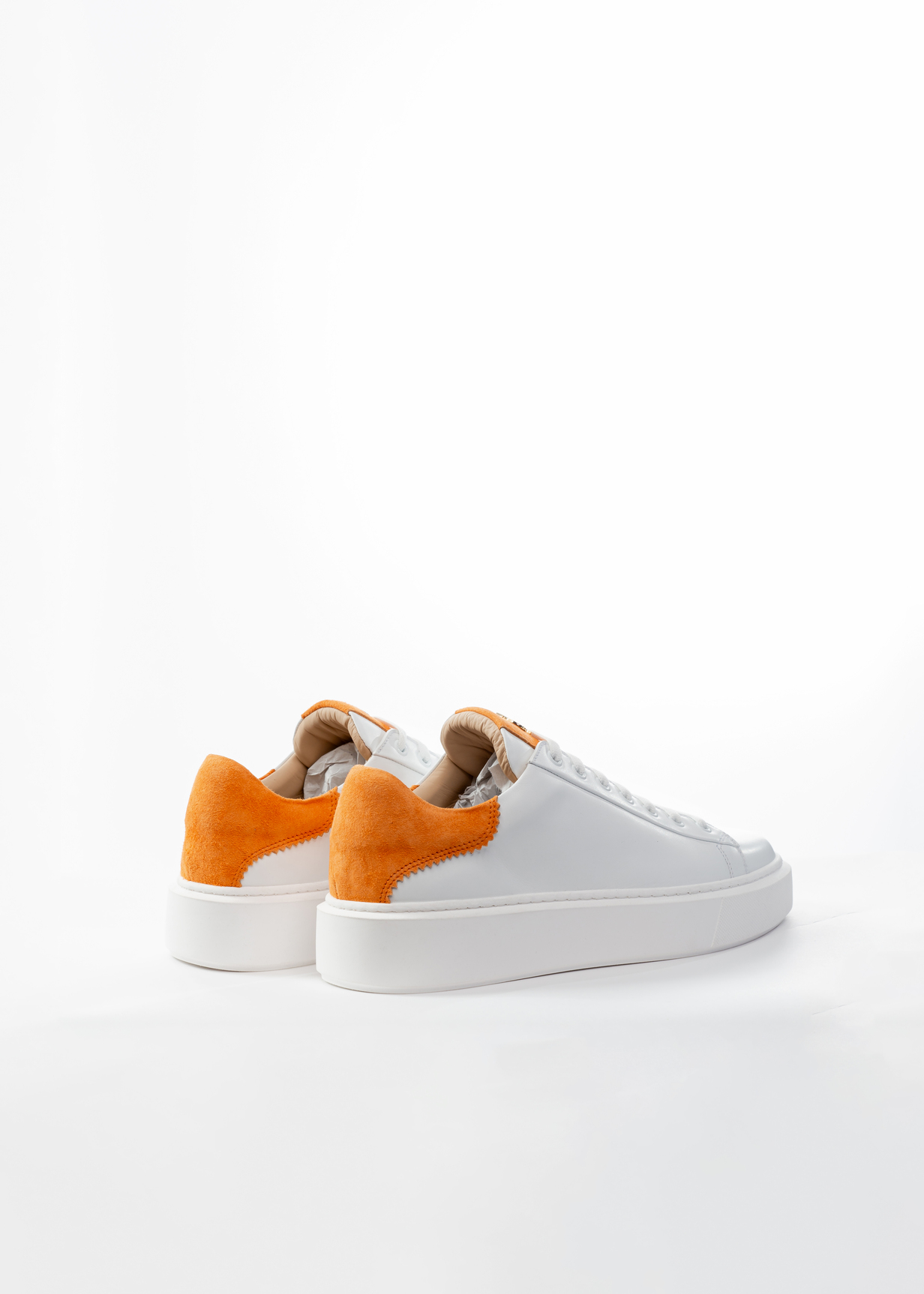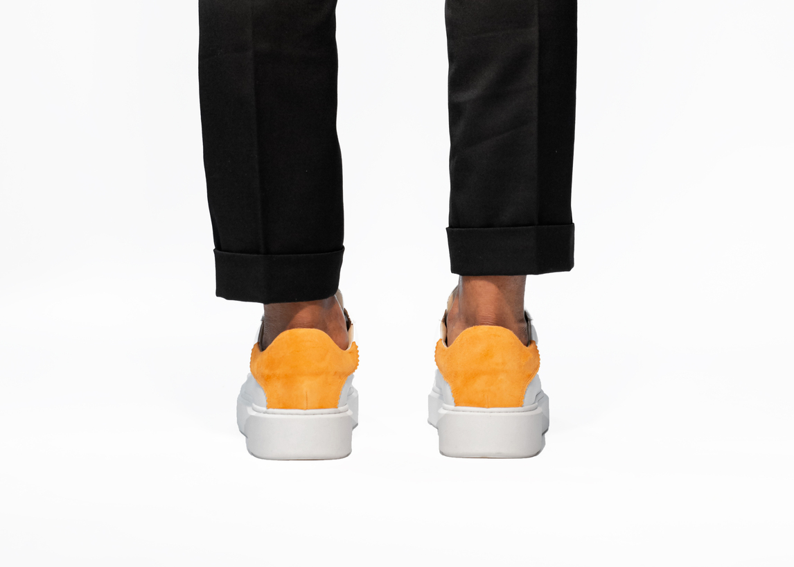 MADE OF FULL GRAIN CALF LEATHER AND ORANGE SUEDE ACCENT. HAND STITCHED. MADE IN ITALY |