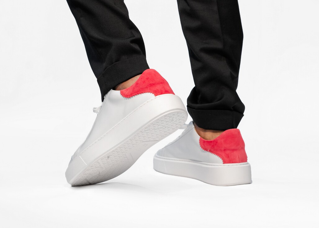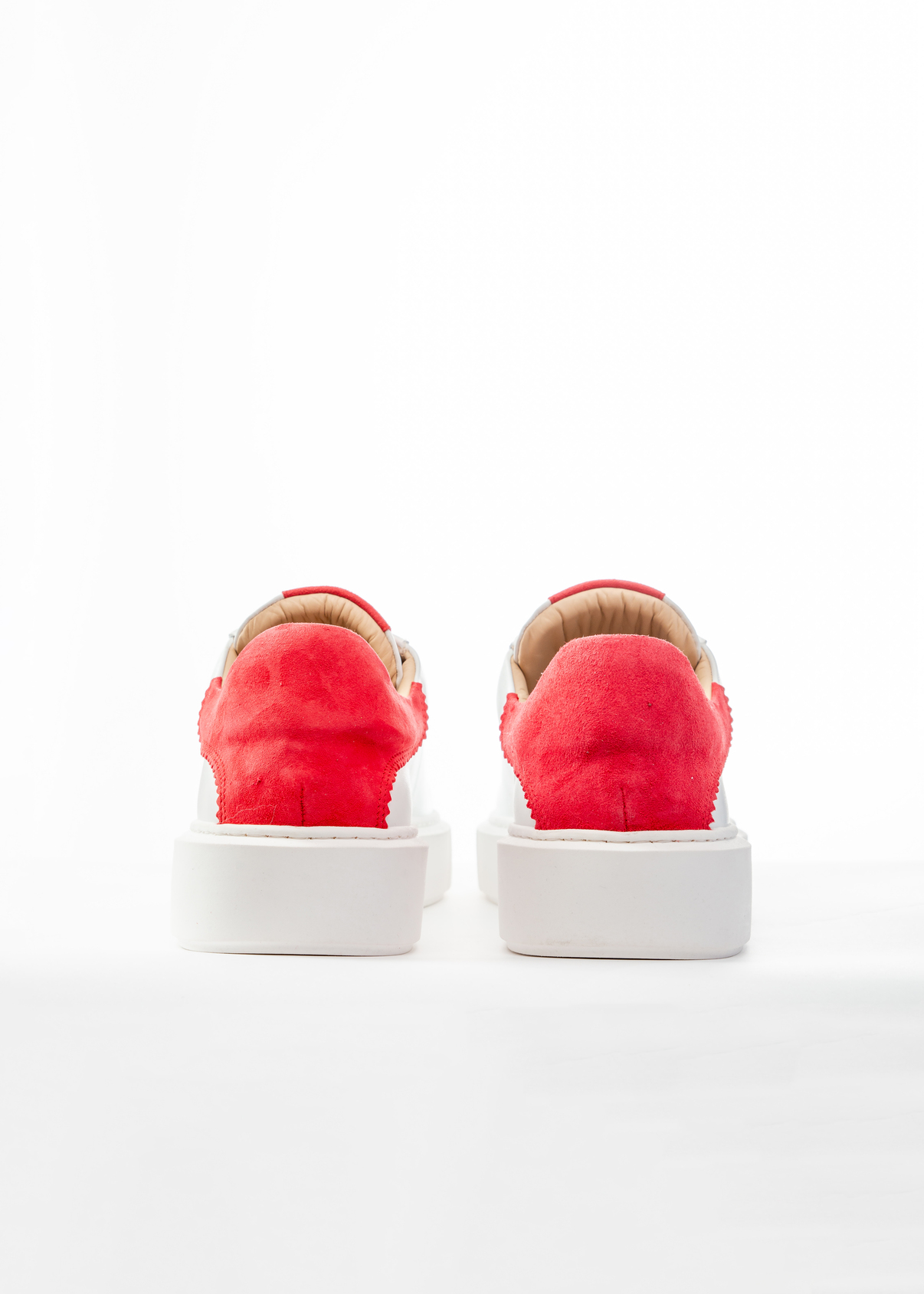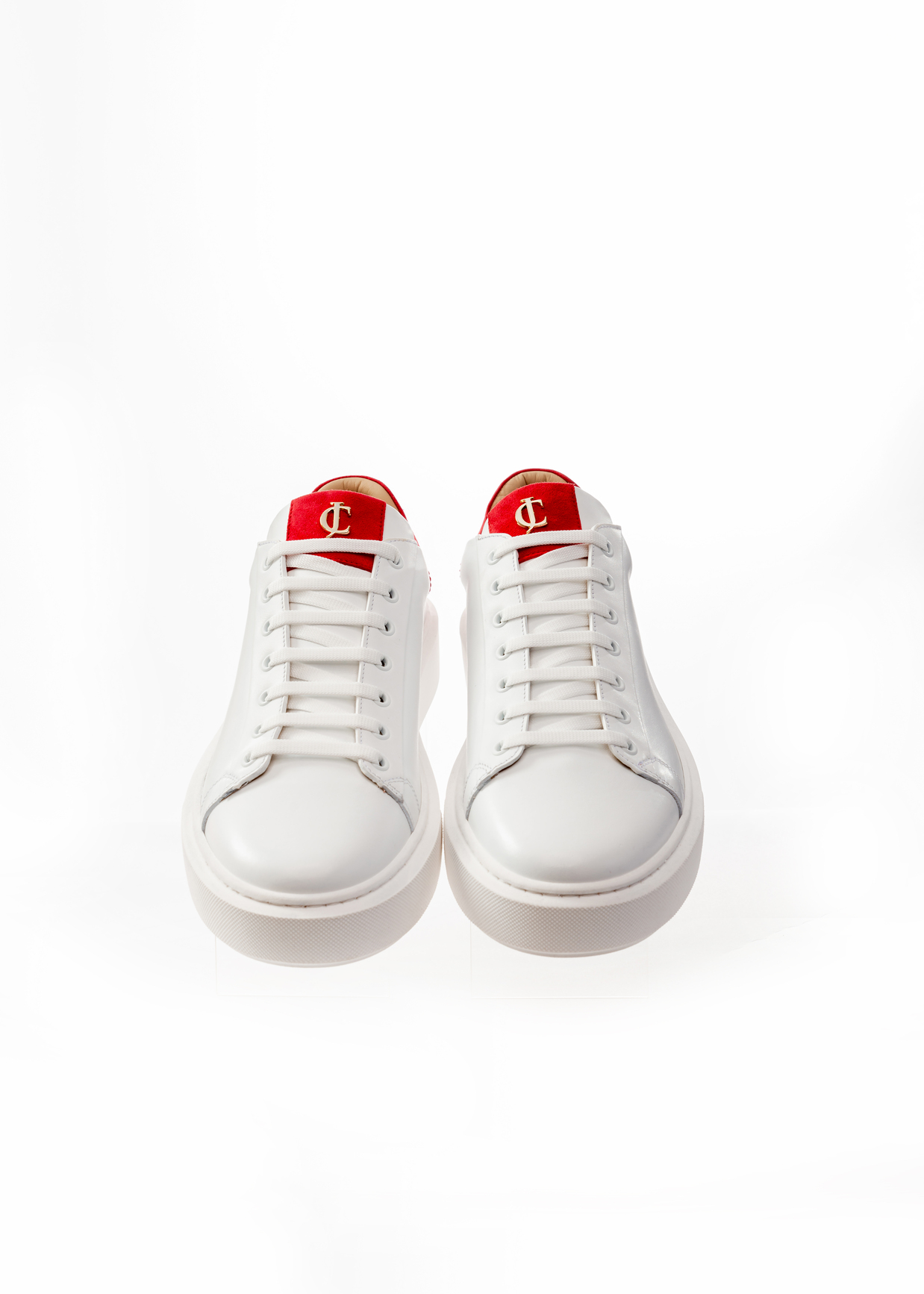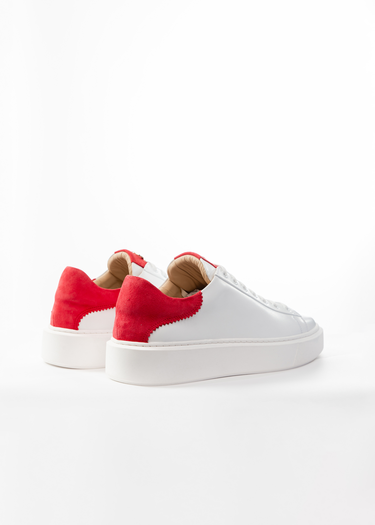 MADE OF FULL GRAIN CALF LEATHER AND RED SUEDE ACCENT. HAND STITCHED. MADE IN ITALY |